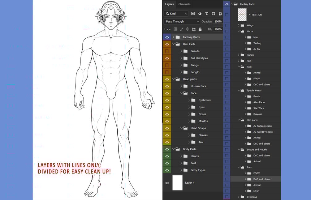 This base is separated into many layers and groups with HD lines, as well as Ipad and Sai friendly versions resized and divided.